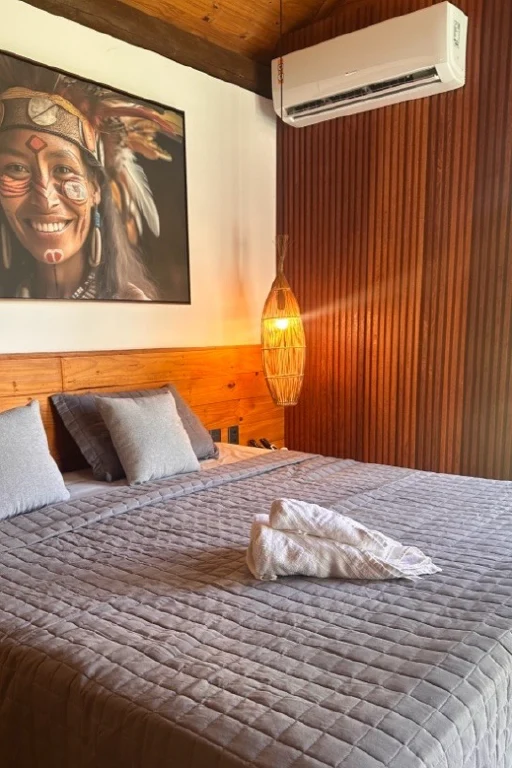 Ideal para casais ou viajantes que valorizam descanso e privacidade, o bangalô oferece um ambiente acolhedor, funcional e cuidadosamente planejado para proporcionar dias leves, sem excessos e sem pressa. Aqui, cada detalhe convida a desacelerar e aproveitar o tempo no seu próprio ritmo.
